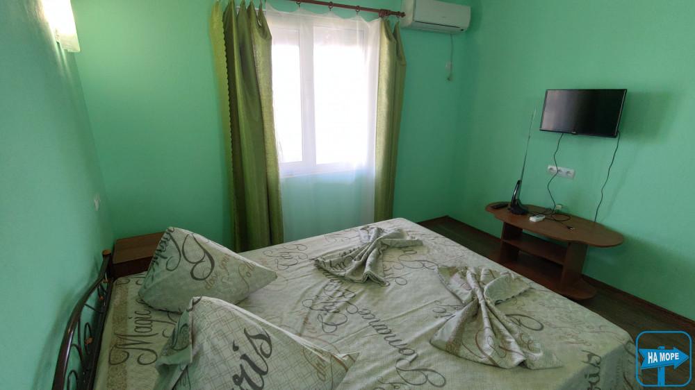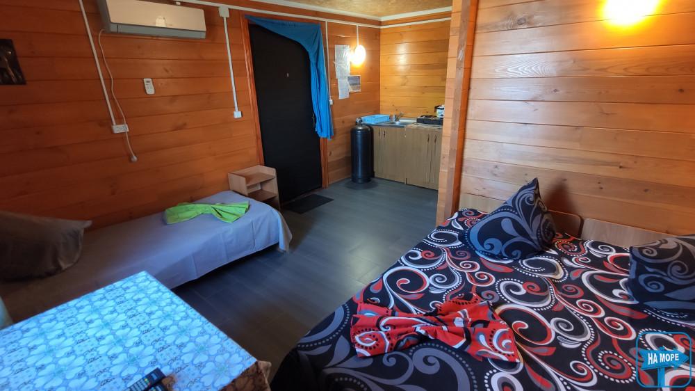 одна кімната 5х4 - дерев'яні одно та два спальні ліжка, супутникове ТБ, WI-FI, кондиціонер, комплект постільної білизни