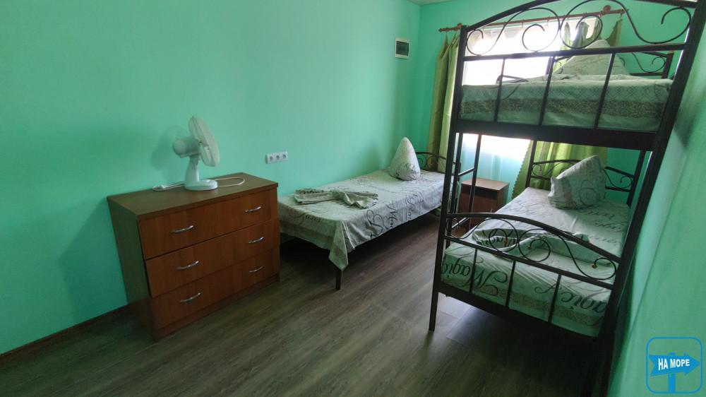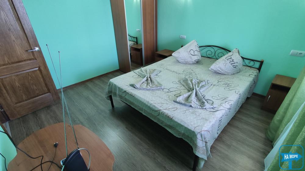 дві не прохідні кімнати 3х4 - у кожному дерев'яному одному і двох спальні ліжка, супутникове ТБ, WI-FI, кондиціонер, комплект постільної білизни;