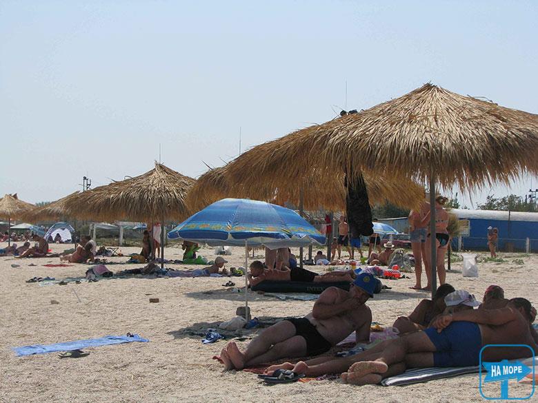 • власний пляж довжиною 300м - м'який дрібний пісок парасольки навіси шезлонги
