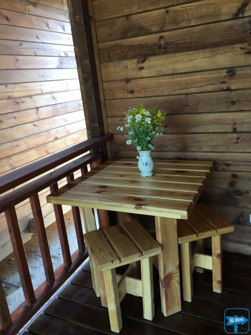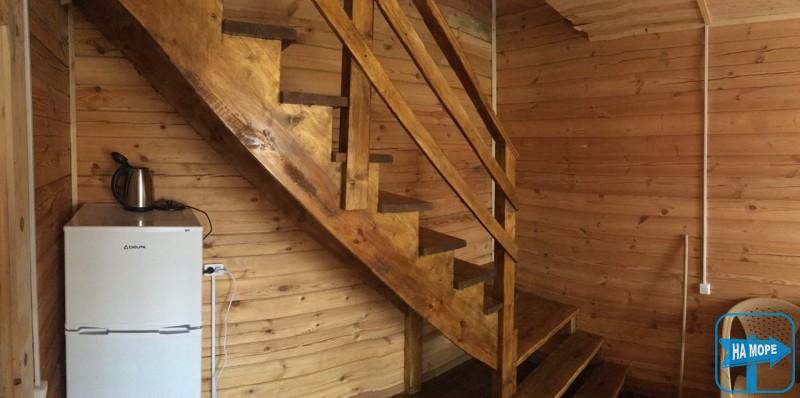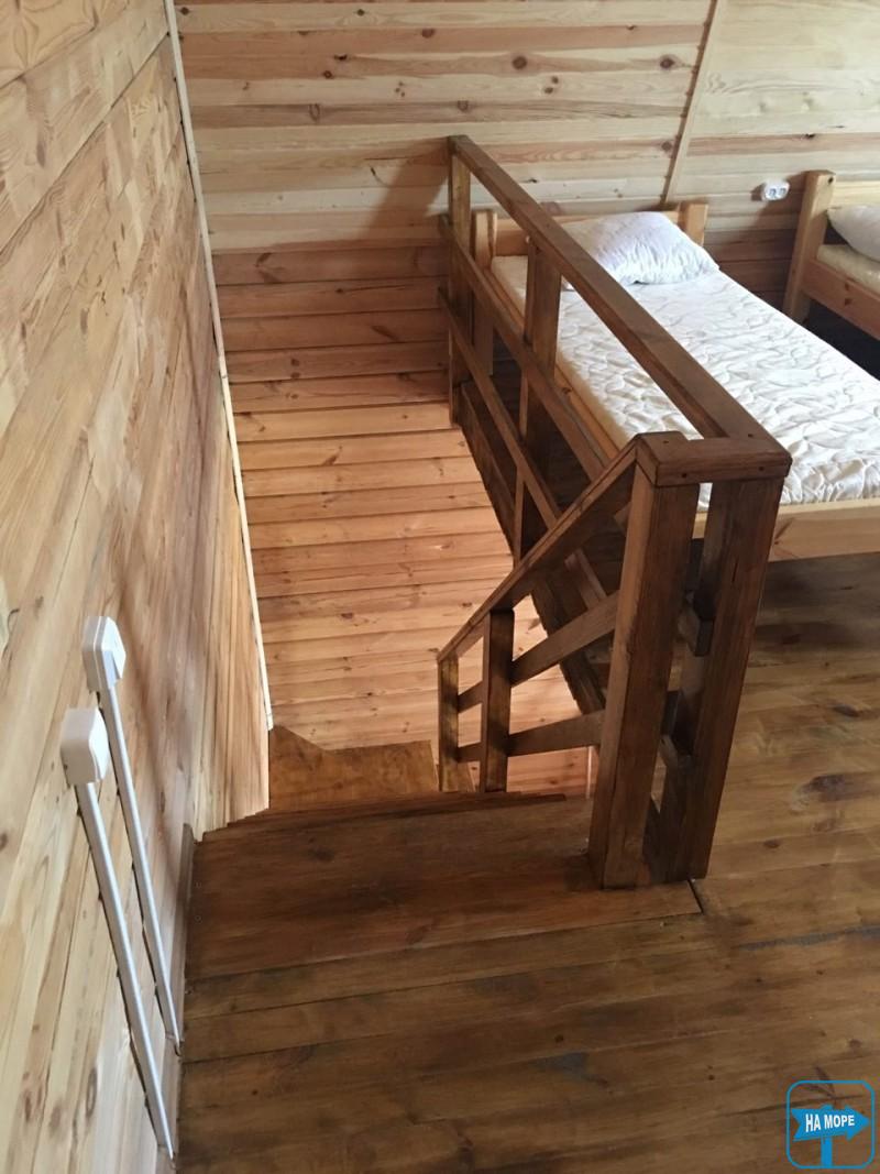 Пропонуємо відпочити в затишних дерев'яних котеджах: чотири одноповерхові, два двоповерхові, десять номерів у двоповерховому дерев'яному корпусі, кухня, дитячий майданчик, автостоянка, мангал, WiFi.