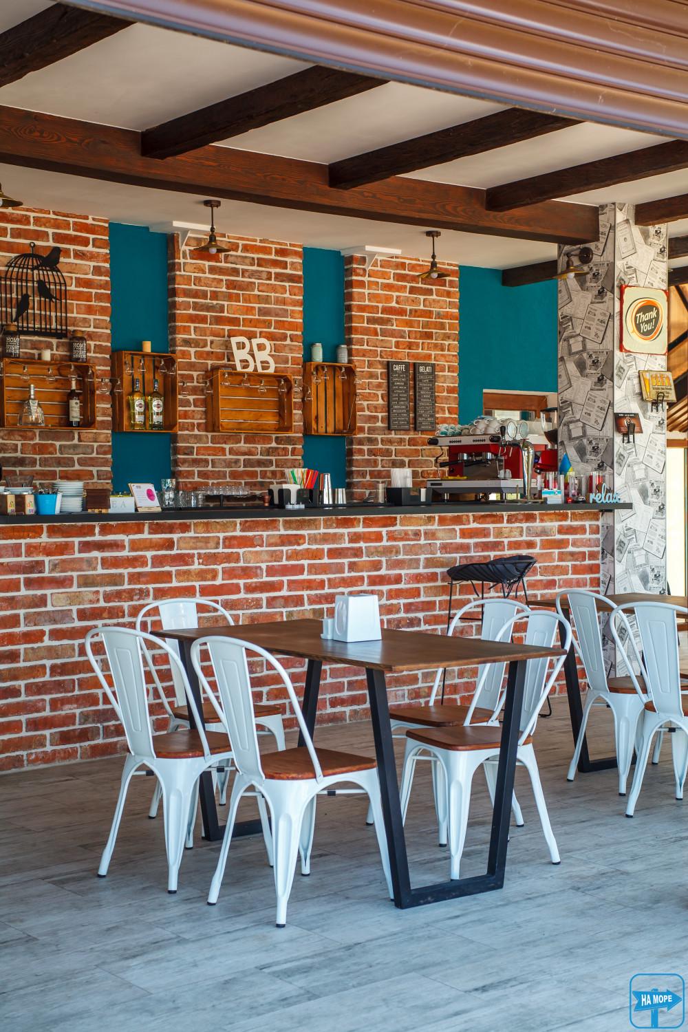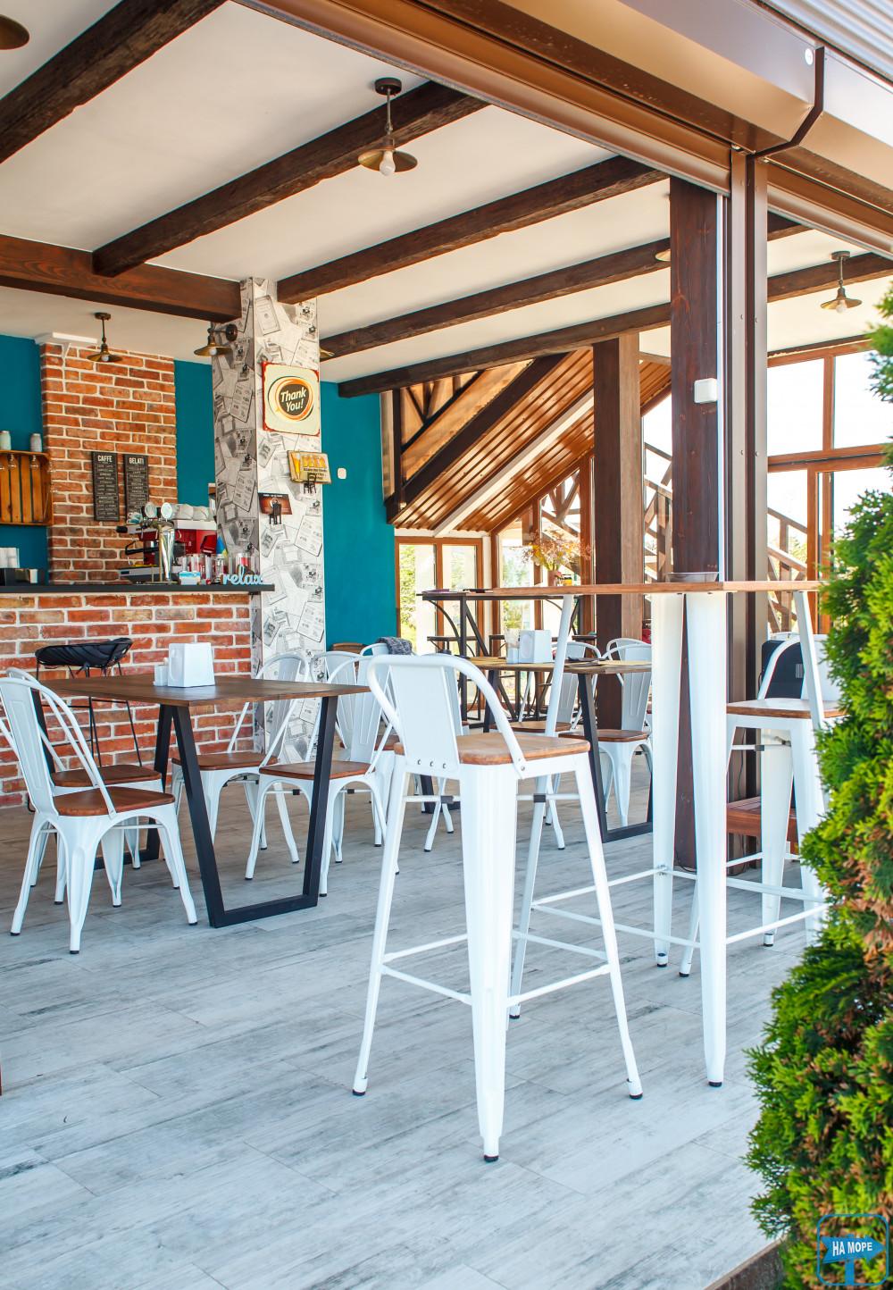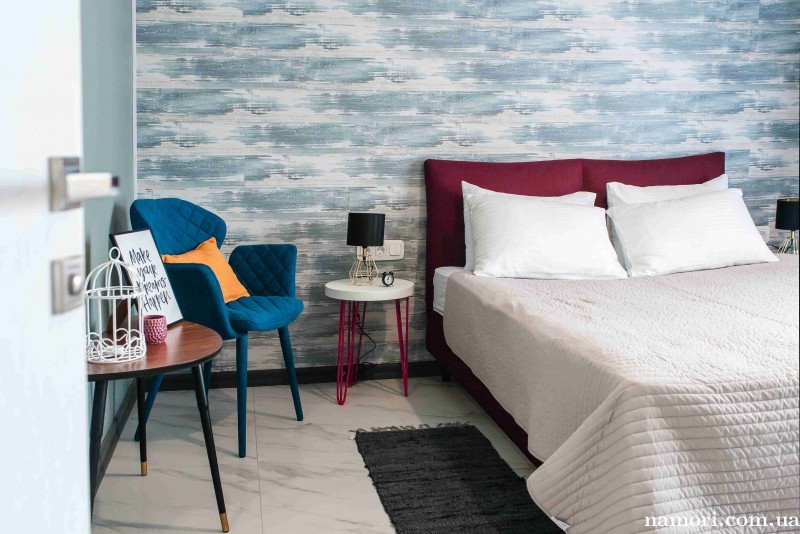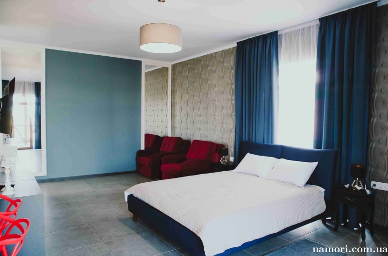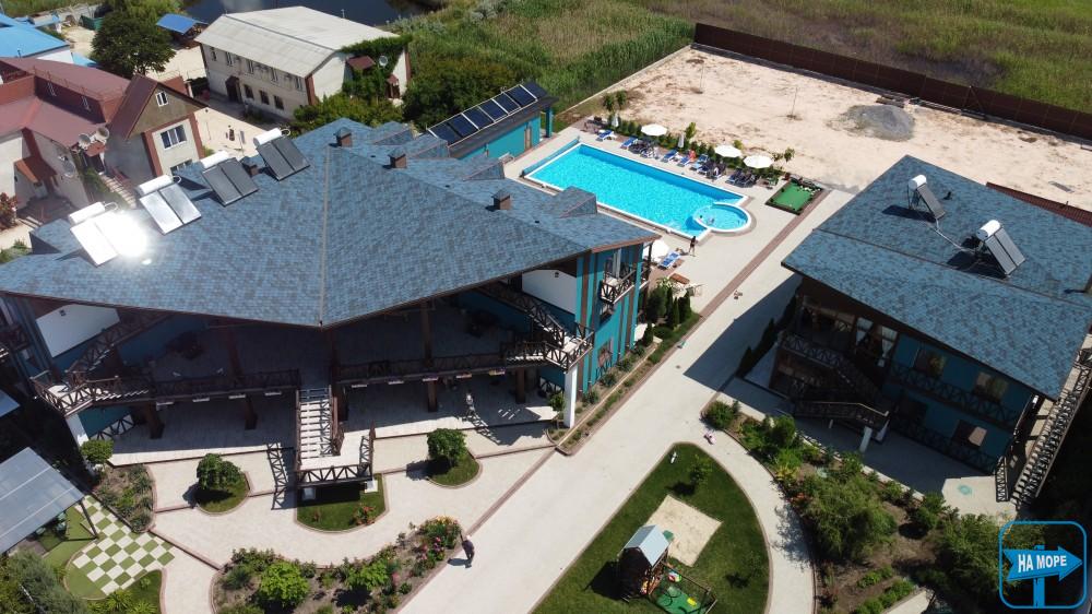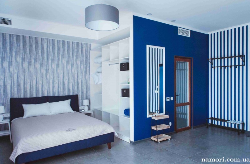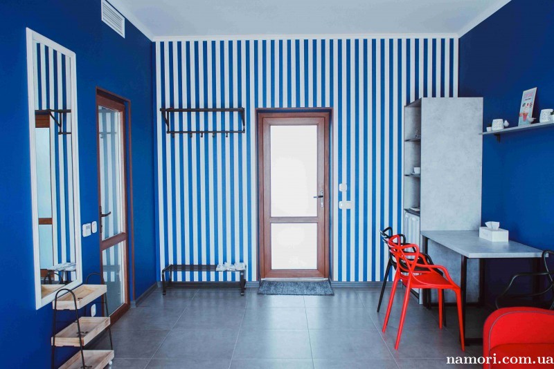 Вся концепція проекту вибудовувалась на незвичайному контрасті. Сміливий та зухвалий бірюзовий колір у поєднанні з традиційними дерев'яними елементами на фасаді, створює відчуття комфорту та затишку, при цьому не втративши своєї неординарності та яскравості. Індивідуально підібраний декор у кожному номері є для нас золотим правилом.