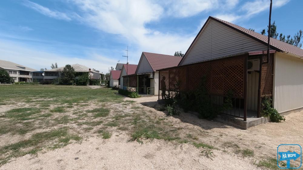 За 100 метрів від бази розташований упорядкований піщаний пляж, обладнаний усім необхідним: туалет, душ, лежаки, парасольки, навіс.