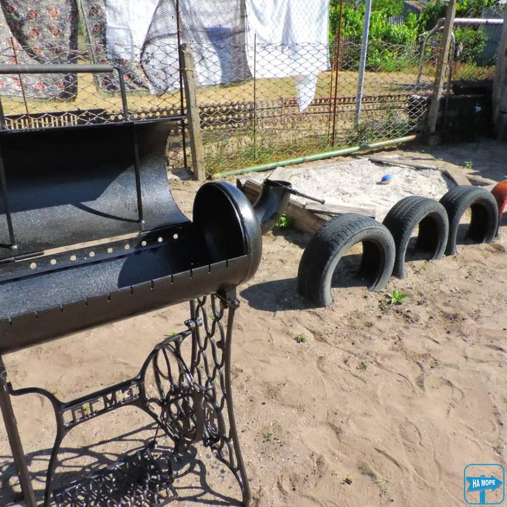 На подвір'ї шикарний мангал для приготування шашлику з функцією копчення, м'ясо виходить просто дивовижне.