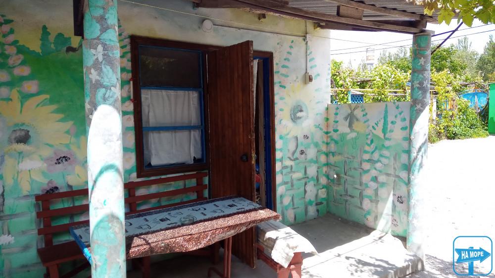 поряд з кімнатою столик та лави