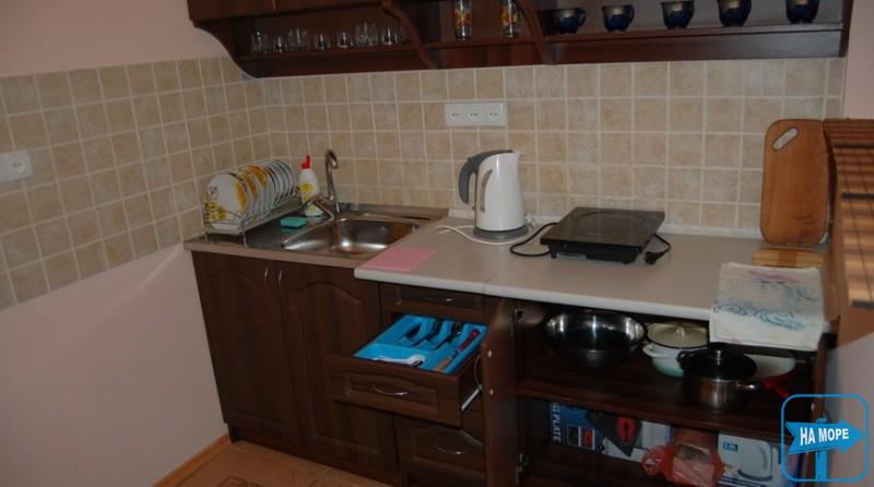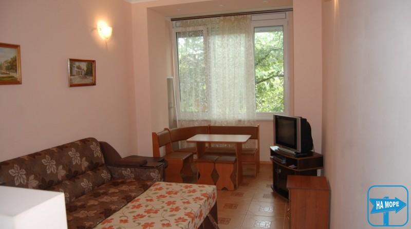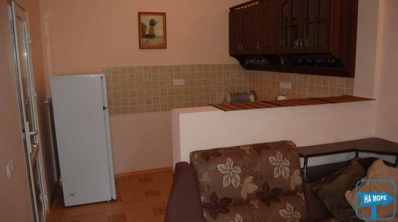 Багатоквартирний будинок - перший корпус колишнього санаторію "Золота Нива" розташований за 50 метрів від набережної. Багаторічні платани та верби створюють неповторну атмосферу тиші та прохолоди для відпочиваючих. На подвір'ї можна розташувати авто. Пропонуємо затишну квартиру із кухнею-студією на другому поверсі.