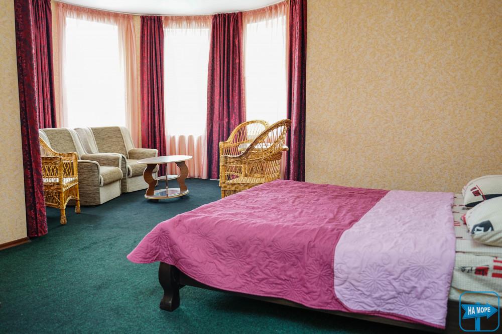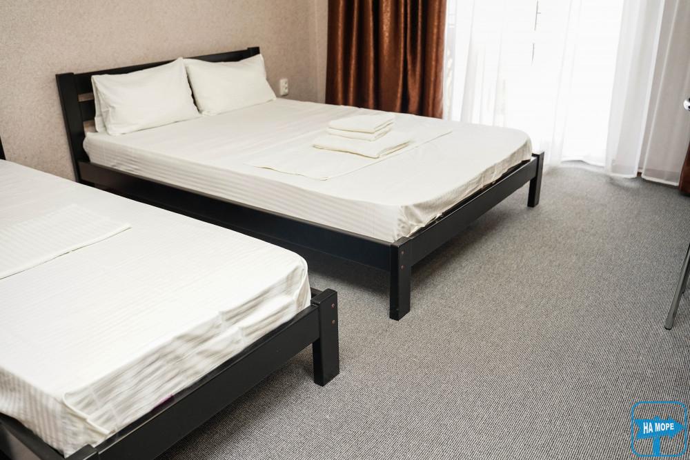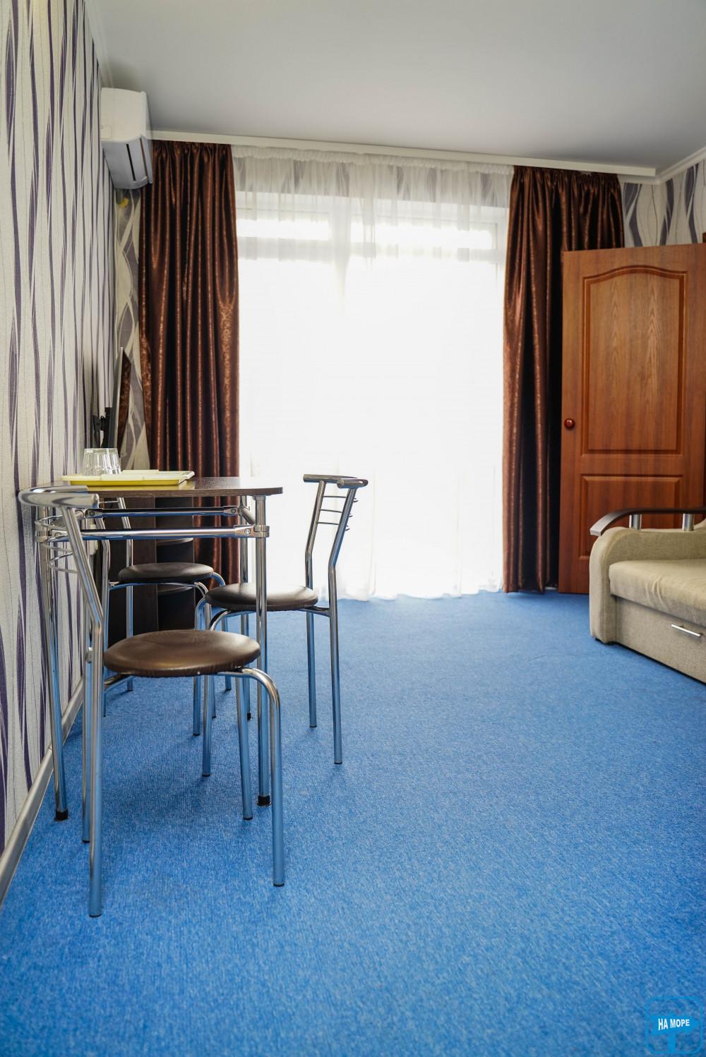 Номер укомплектований сучасними меблями: двоспальне ліжко, односпальне ліжко, шафа для одягу, тумбочі, стіл, стільці, телевізор, холодильник, кондиціонер, окремий санвузол з душовою кабіною, на підлозі килимове покриття – "ковролін". У більшості номерів є балкон і панорамні вікна. Постільні речі, комплект рушників. Цілодобова подача гарячої та холодної води. Wi-Fi.