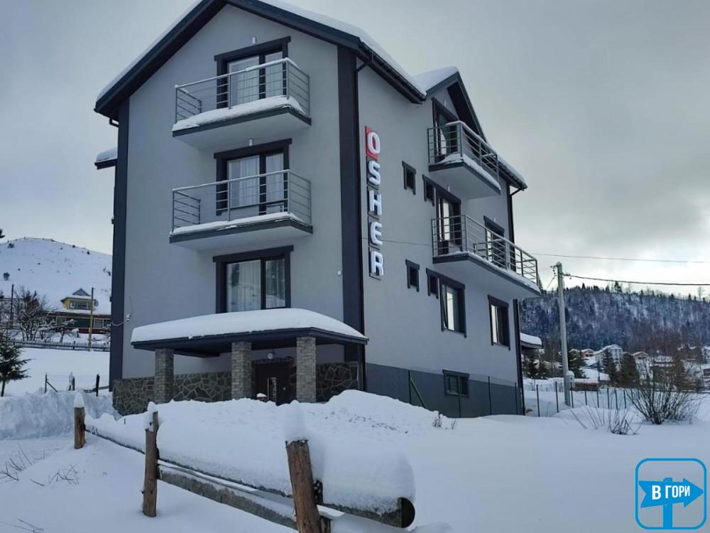 Готель "Ошер" розташований на території гірськолижного курорту Буковель, за 39 км від гори Говерла.