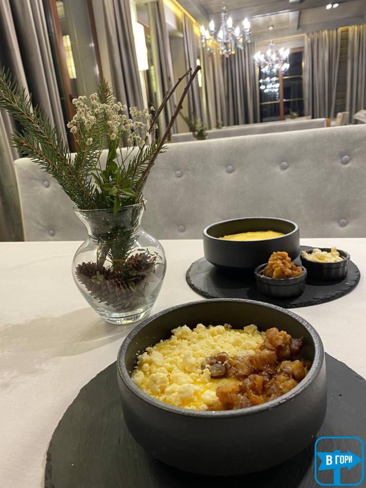 На території готелю розміщений Панорамний ресторан SVOI в меню якого страви традиційної та европейської кухні та різноманіттям інших страв та закусок.