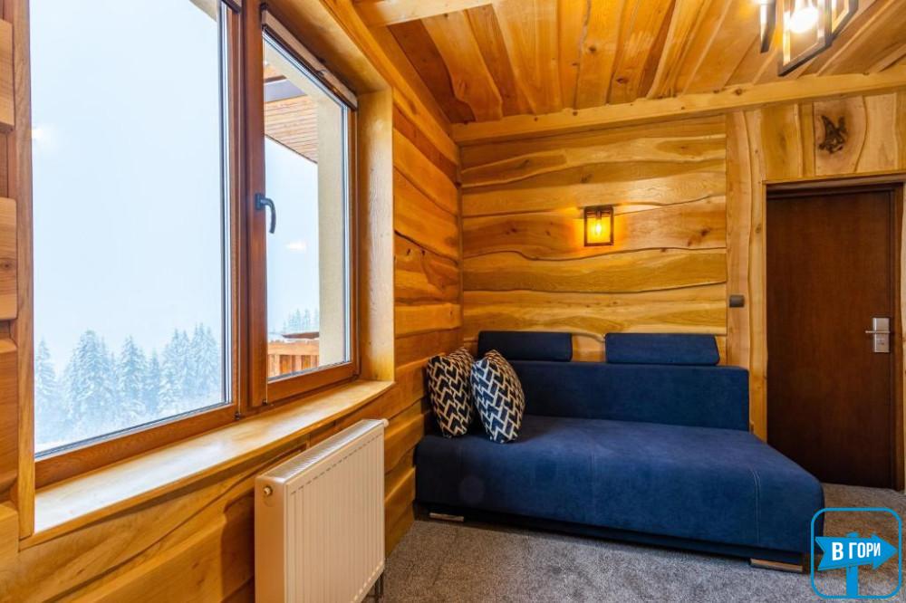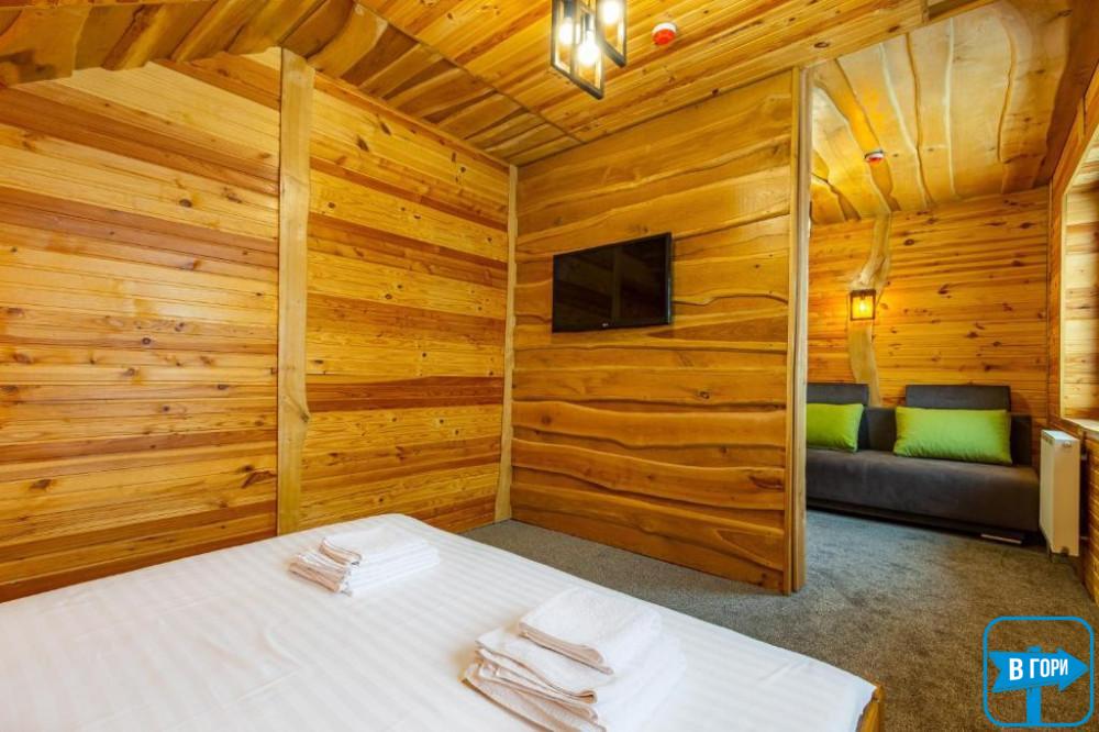 У прихожій кімнаті класу «Люкс» розміщений розкладний диван, який може слугувати як друге двоспальне ліжко, а також вмістка шафа для одягу; у спальні є велике двоспальне ліжко, біля нього стоять дві тумби та плазмовий телевізор. В «Люксі» є балкон, який розкриває чудовий вид Карпат, а також душова кімната з усім необхідним. Вцілому, інтер‘єр номера наділений теплими відтінками з нотками сучасної класики. Кількість номерів – 8