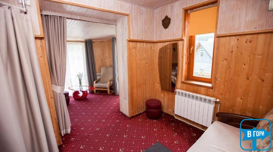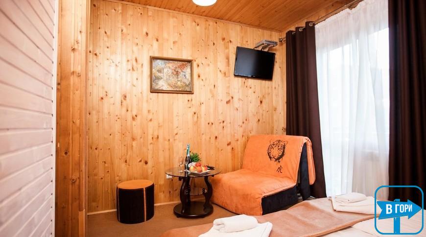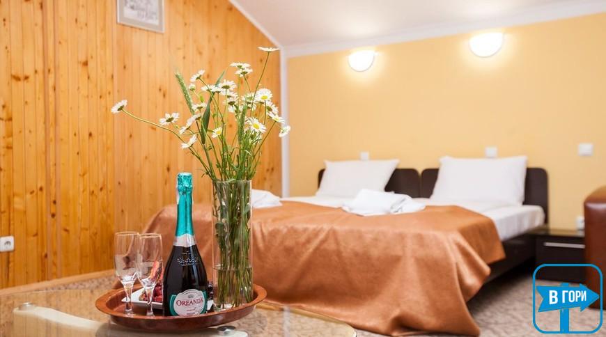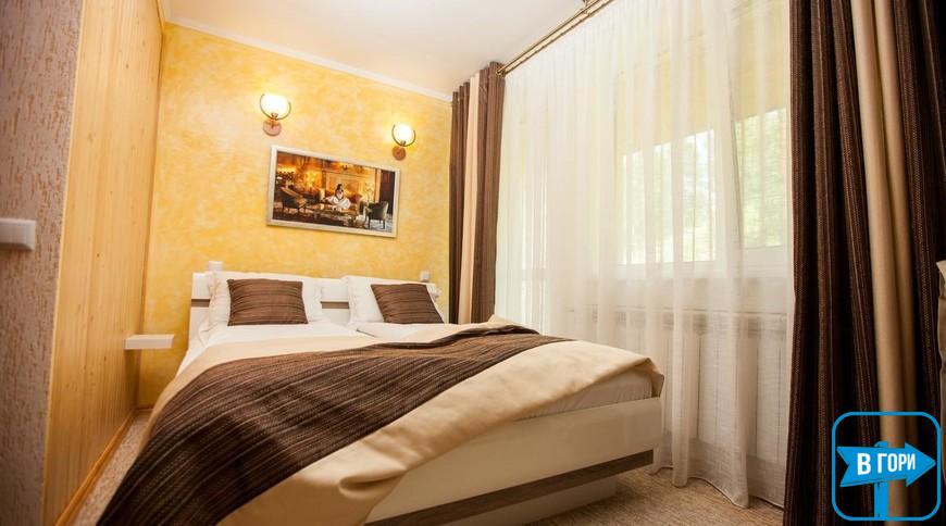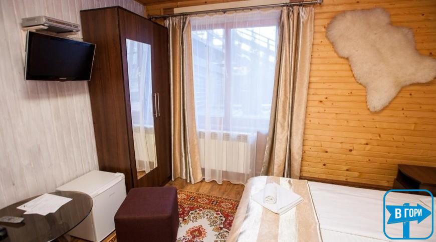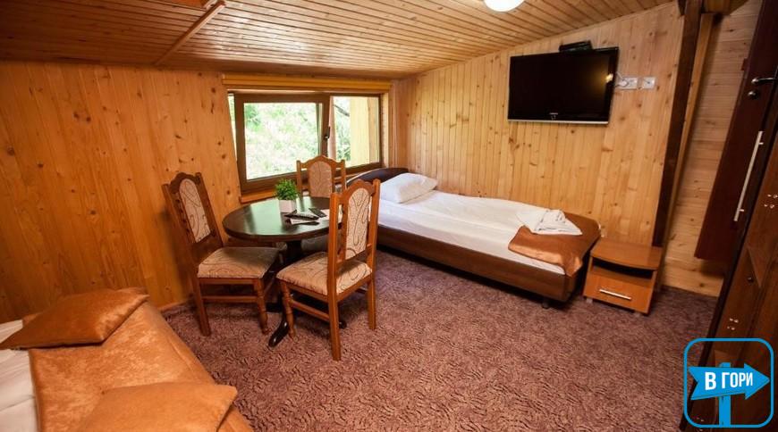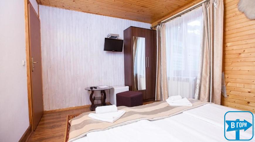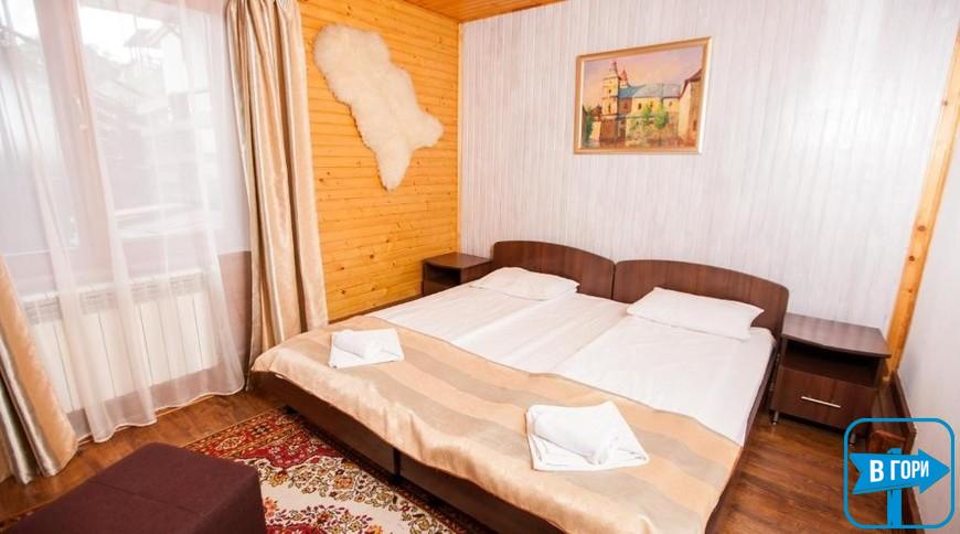 Звукоізольований двомісний номер з 1 ліжком, окремим входом та супутниковим телебаченням.