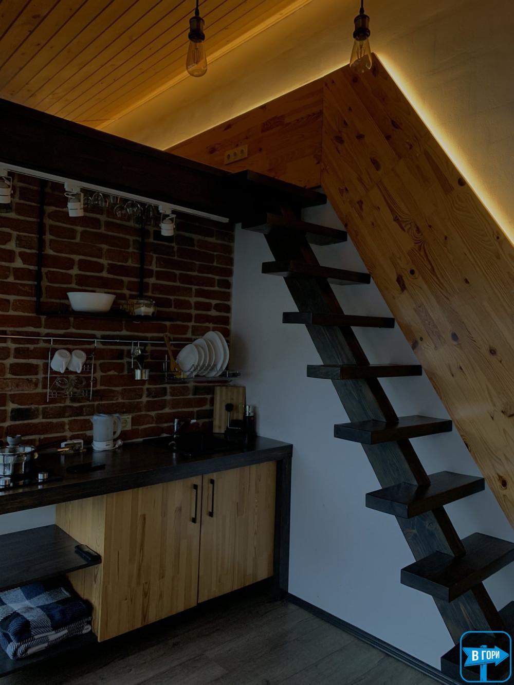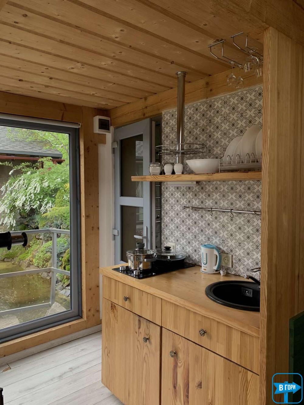 Серед інших зручностей – міні-кухня з холодильником і плитою.
