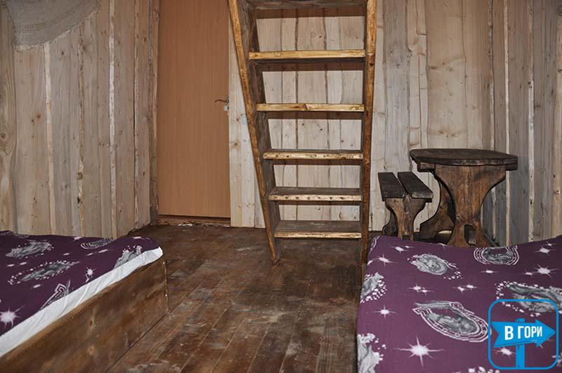 - 5 дворівневих кімнат (у кожній — 2 двоспальні ліжка, вішалка для одягу, телевізор; в одній є додаткове місце — двоспальне ліжко);