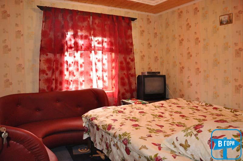 - 2 двомісні кімнати (у кожній — двоспальне ліжко, вішалка для одягу, телевізор; санвузол — туалет, умивальник; 1 кімната має окремий вхід із двору);