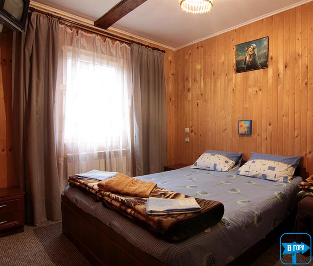 На другому поверсі – 4 двомісні кімнати (у кожній – двоспальне ліжко, вішалка для одягу, телевізор);