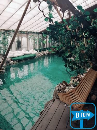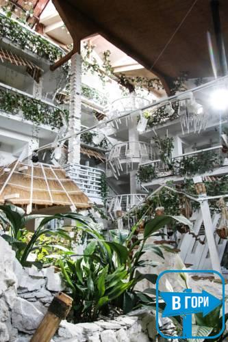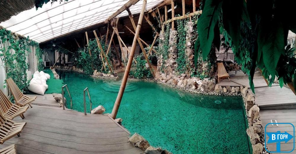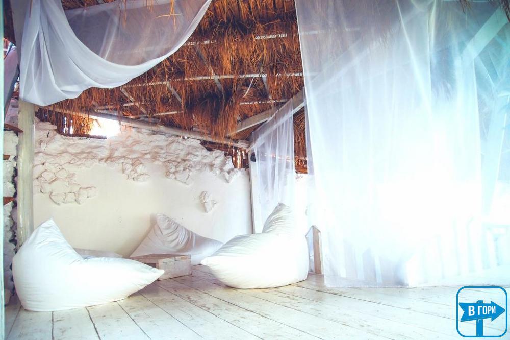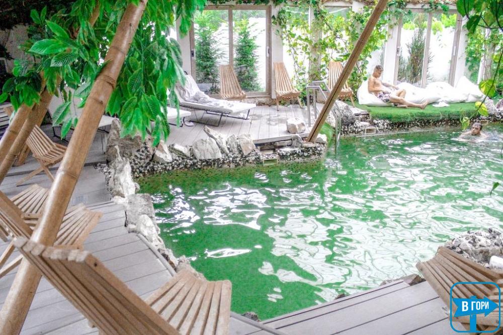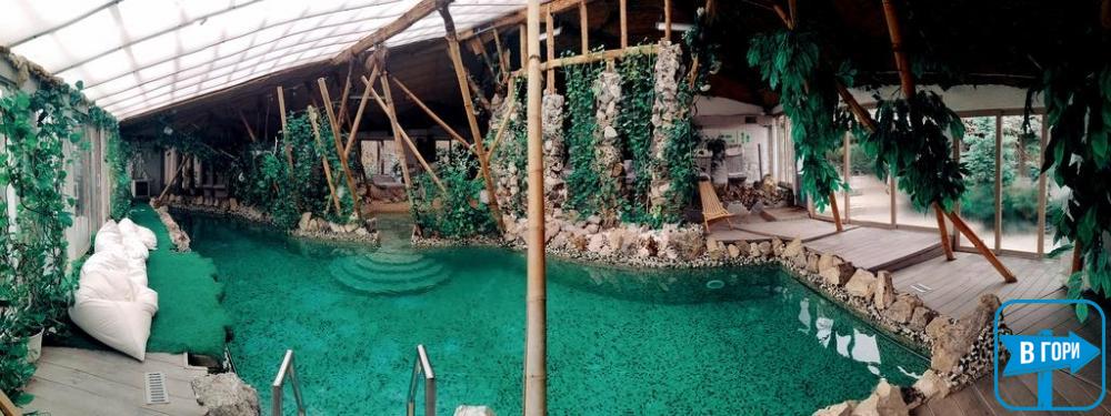 У ресторані з літньою терасою спа-готелю "Хатина" подають страви української та європейської кухні. Коктейлі можна замовити у барі готелю.