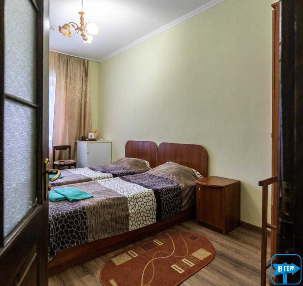 Двомісний Стандарт Комфортабельні номери з двома односпальними ліжками розташовані також на 2 та 3 поверхах. У них є телевізор, холодильник, електрочайник, а також туалетна кімната з душовою кабіною та всіма необхідними зручностями.