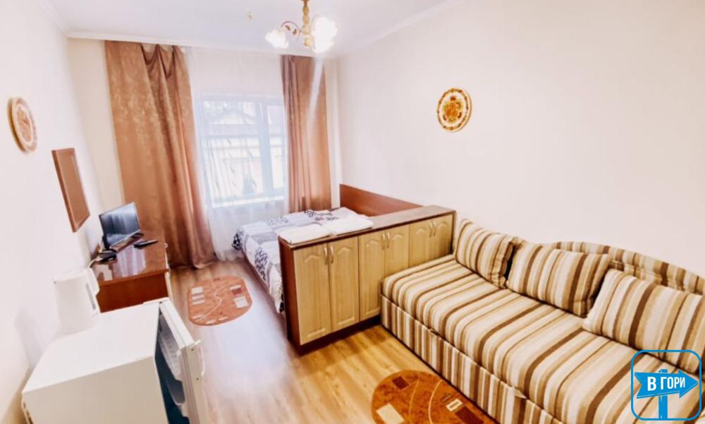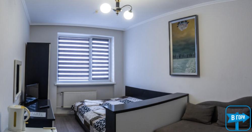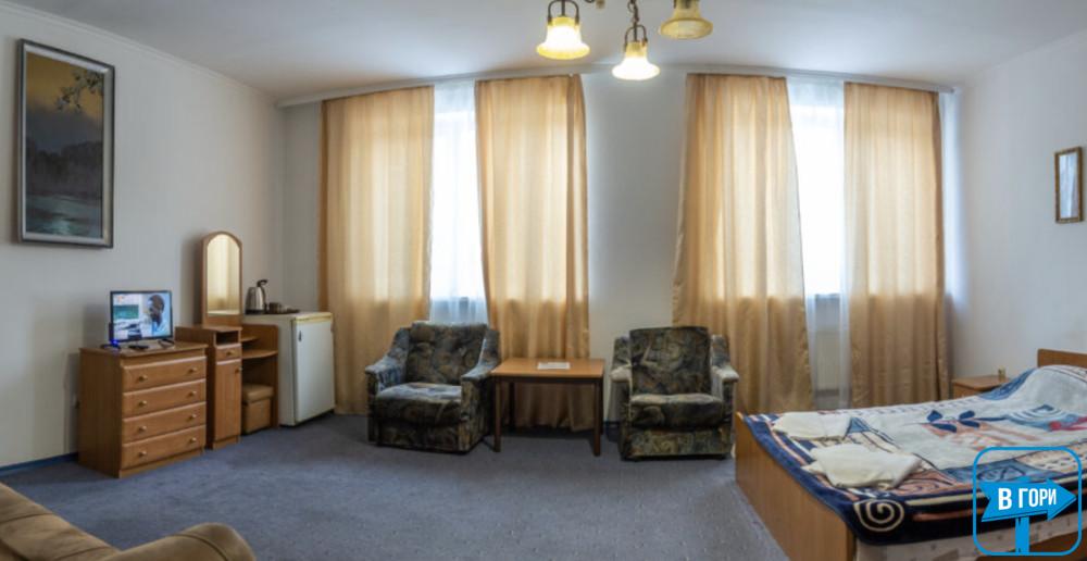 Півлюкс Відмінні номери підвищеної комфортності для двох гостей, обладнані необхідними зручностями, включаючи телевізор, холодильник, електрочайник та інше.