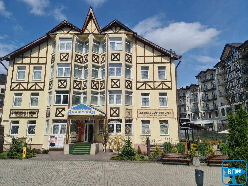 Курортний готель "Вілла Анастасія" розташований у місті Трускавець. З вікон відкривається вид на місто.