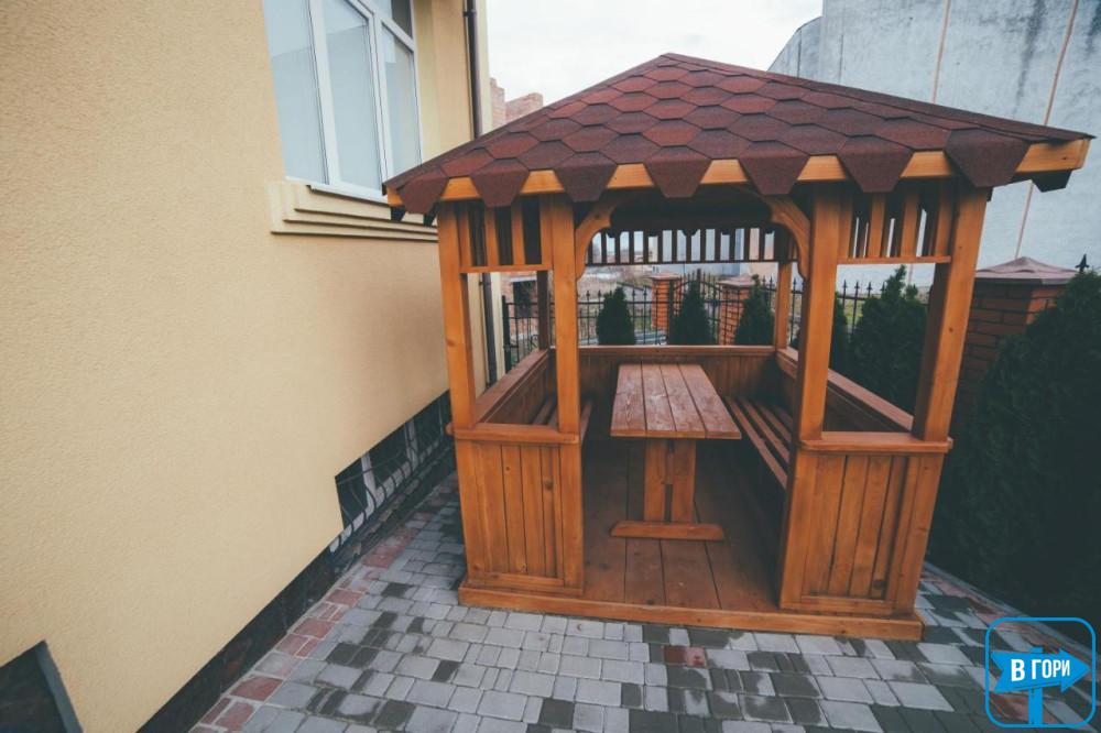 Біля готелю є парковка та альтанка.