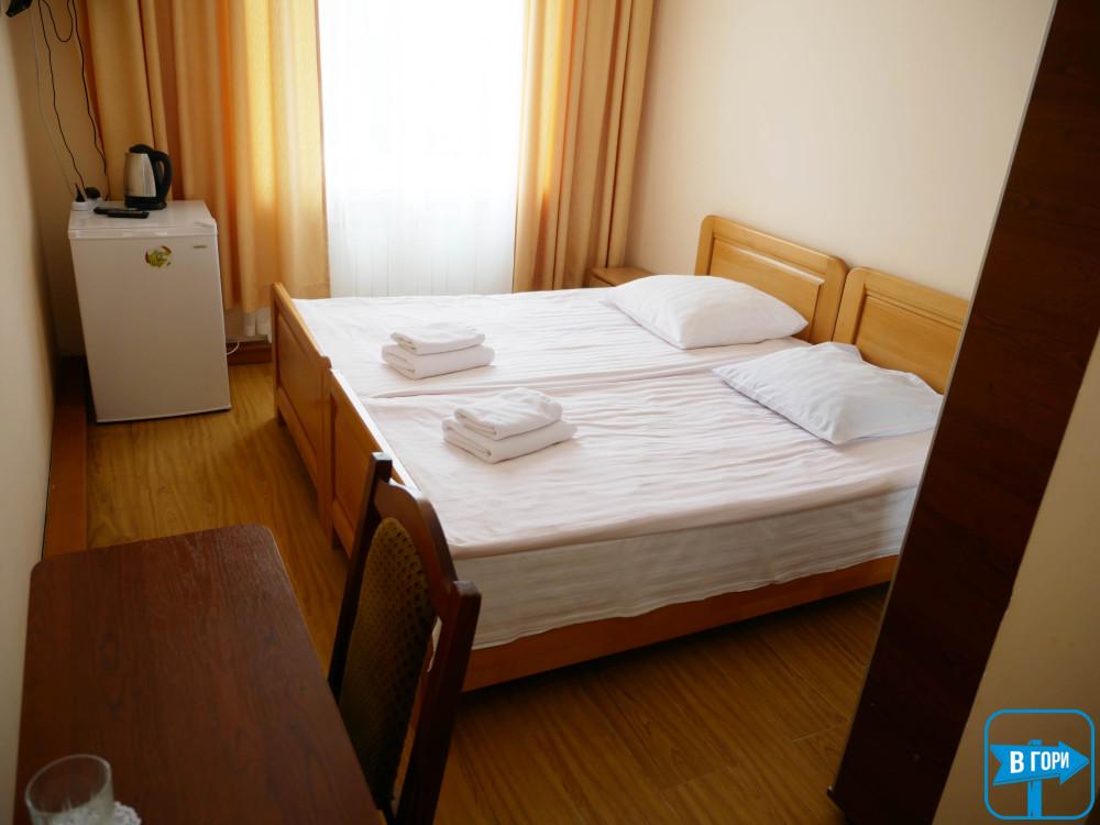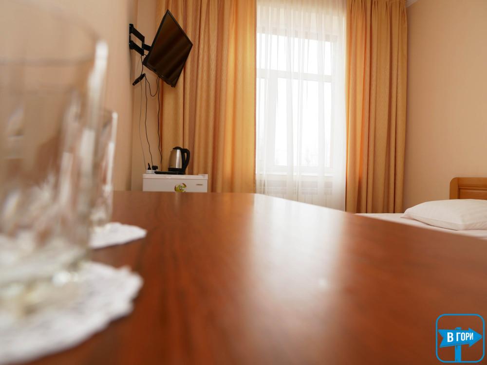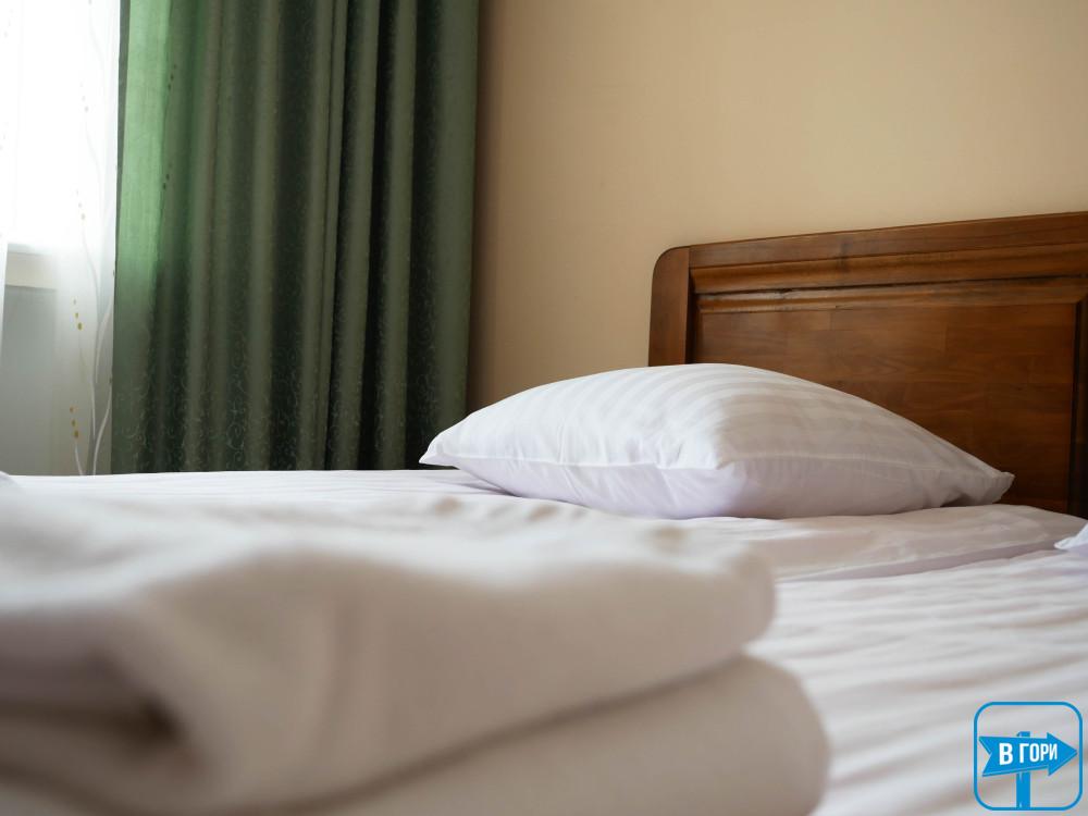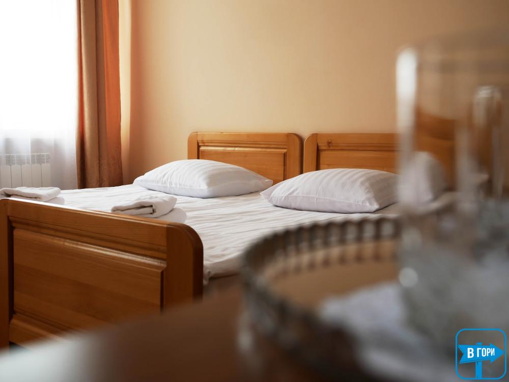 «Стандарт» – однокімнатний 2-місний, житлова площа 16 – 18 м.кв., два односпальні ліжка. Таких номерів – 7 (номери на другому поверсі та на першому поверсі) – уточняйте при бронюванні.