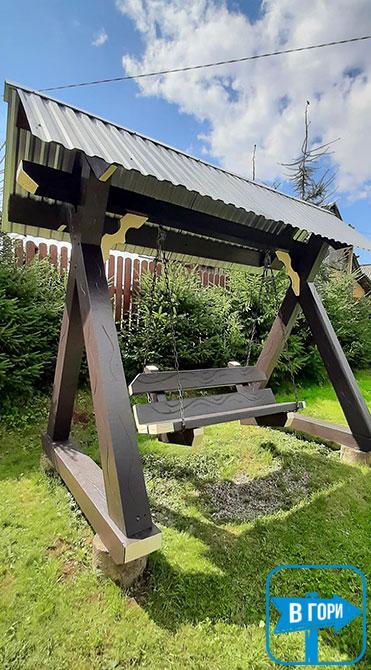 На просторій території котеджу є альтанка для відпочинку, мангал, гойдалка для дітей і місце для паркування.