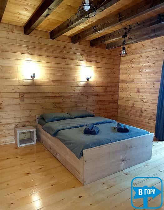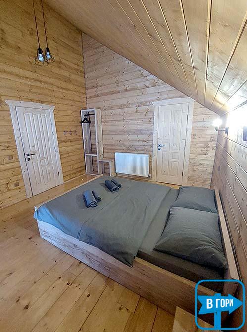 2 двомісні номери (двоспальне ліжко, вішалка для одягу, комод, телевізор; санвузол — душ, туалет, умивальник, фен).