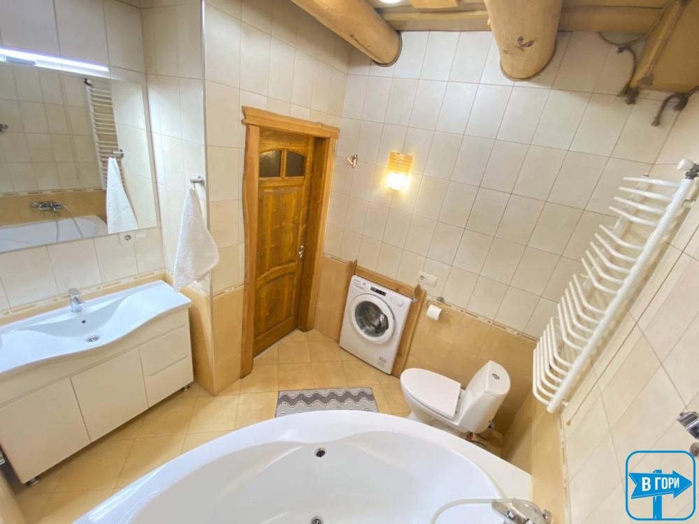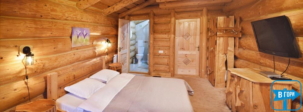 Дві двомісні кімнати. У кожній кімнаті – двоспальне ліжко, телевізор 32″, санвузол (душова кабіна, туалет, умивальник). В одній із кімнат є міні-антресоль зі спальним місцем.