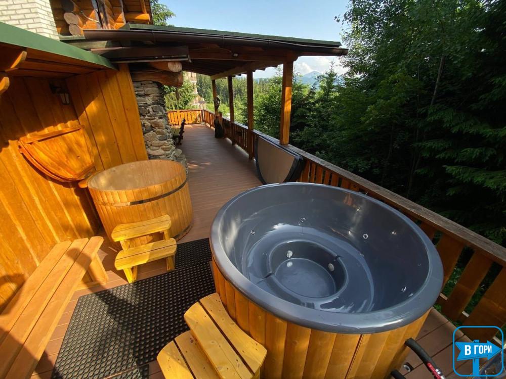 Купелі розташовані на відкритій частині тераси, цілющу воду із вмістом сірко-водню нагріваємо до 40°C, тому Ви зможете відчути повне розслаблення та насолоду навіть коли на вулиці найсильніші морози.