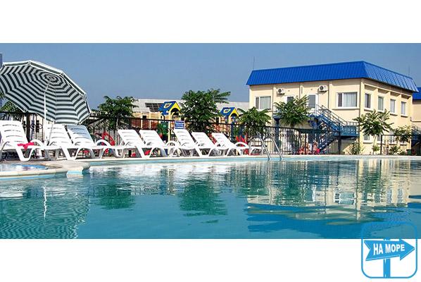 власний піщаний пляж, прокат катамарана, басейн, рятувальна служба, медпункт, майданчик для дітей, спортивний майданчик, комп'ютерний клуб. Також є кінозал, професійний конференц-зал на 100 місць із сучасним мультимедійним обладнанням, кафе, із зоною «Шоу-гриль», автомобільна стоянка. На базі відпочинку постійно проводяться різноманітні розважальні заходи та тематичні вечірки.