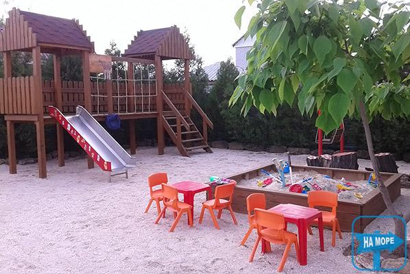 на території є великий відкритий басейн, дитячий майданчик з пісочницею, гойдалками та гіркою, дитячий розважальний атракціон «Лабіринт» (платно), настільний футбол. Для відпочинку на свіжому повітрі та вечірніх посиденьок обладнані затишні альтанки, є також мангал та зона барбекю. Якщо ви приїхали до нас власним автомобілем – до ваших послуг автостоянка. А родзинкою готельного комплексу є декоративний ставок з рибками та фонтан.