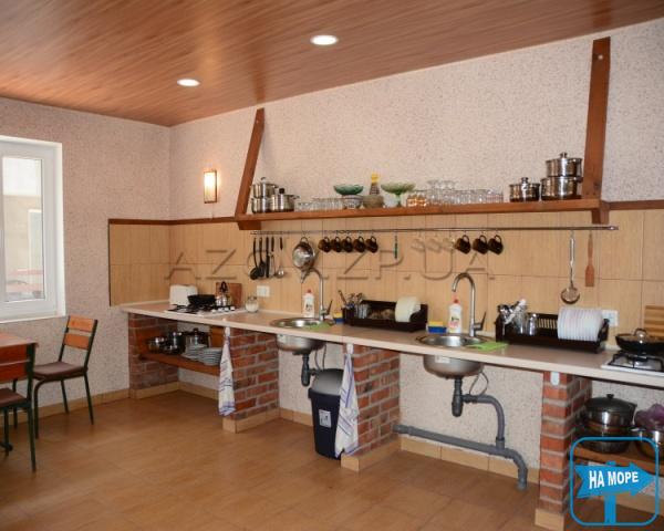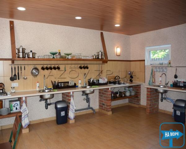 Для гостей обладнана спільна кухня – сучасні мийки, газові плити, якісний імпортний посуд, каструлі та сковорідки. Велика обідня зона облаштована поруч із кухнею, на веранді, прихованої від сонячних променів та вітру. Продукти можна придбати у прилеглих магазинах та на ринку.
