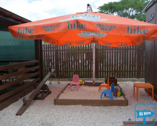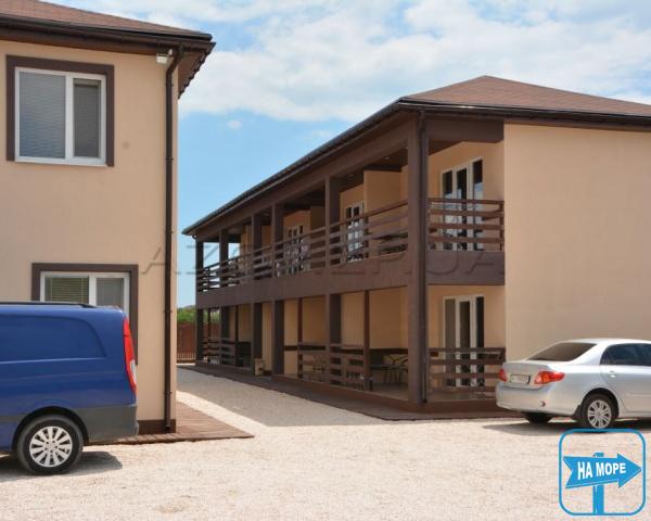 Двір покритий піском та галькою. На першому поверсі корпусів – веранди зі столиками. Є дитячий майданчик з пісочницею та гойдалками.