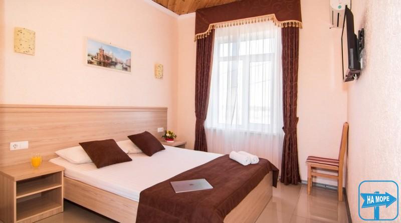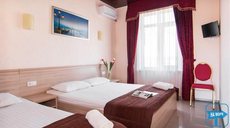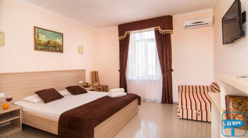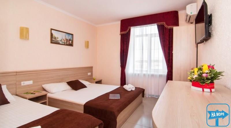 Готель "Венеція" розташований на відстані 400 метрів від нескінченно довгих піщаних пляжів Чорного моря в курортному селищі Херсонської обл., смт.Лазурне, вул.Курортна 2.
