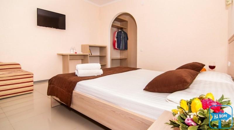 Гостей порадують комфортні номери різних категорій з усіма зручностями, площею 17-50м2! (В оздобленні номерів використані виключно натуральні матеріали, інтер'єр оформлений у теплих пастельних тонах.