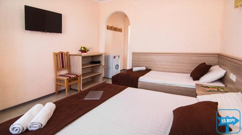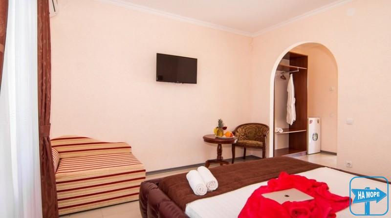 За кожним номером закріплений столик на спільній терасі (150м2!) з якої відкривається вид на море. На терасі є безкоштовний Wi-Fi. Прилегла до території автостоянка для автомобілів обладнана камерами відео спостереження.