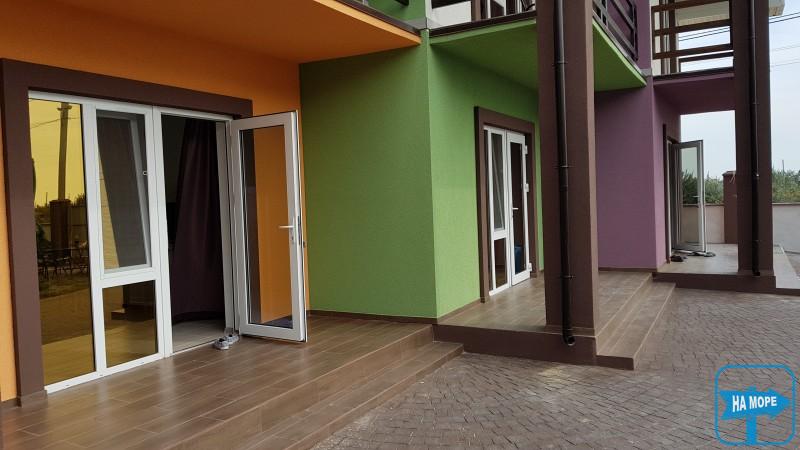 Номери нові, збудовані в 2018 році, вид на море загальна площа 50кв.м., вітальня, окрема кухня, дві спальні, два санвузли. У номері кондиціонери, телевізори, фен, у спальнях двоспальні ліжка, у вітальні диван. На кухні холодильник, мікрохвильова піч, чайник, необхідний посуд. В апартаментах можливе розміщення до 7 осіб.