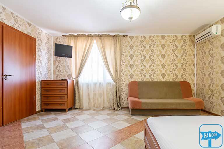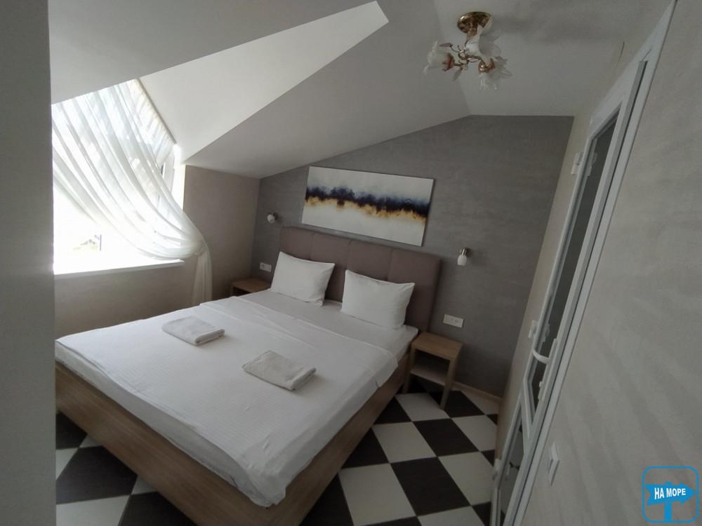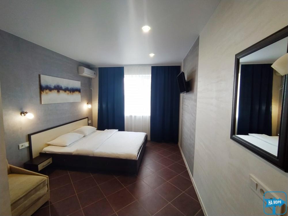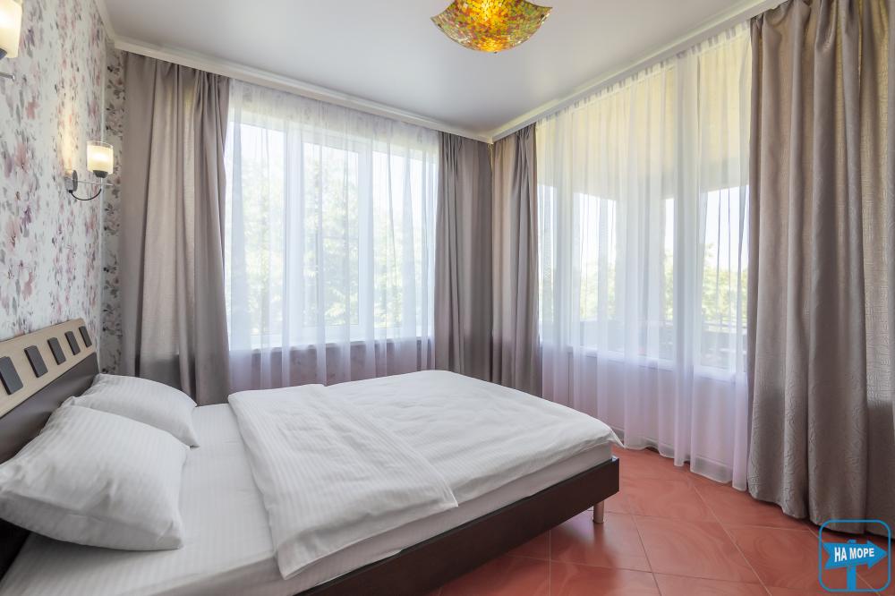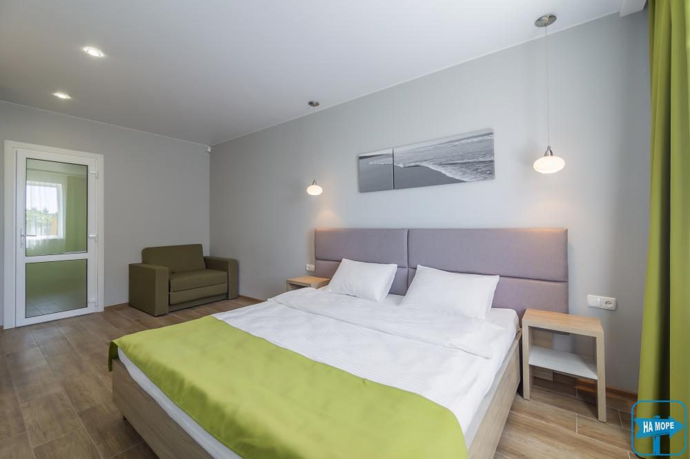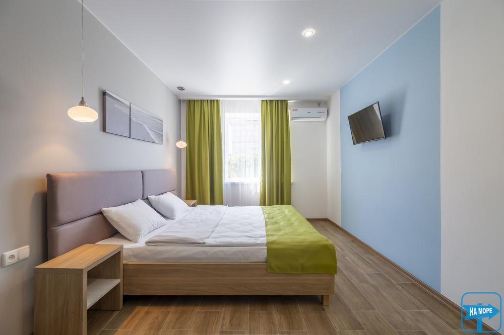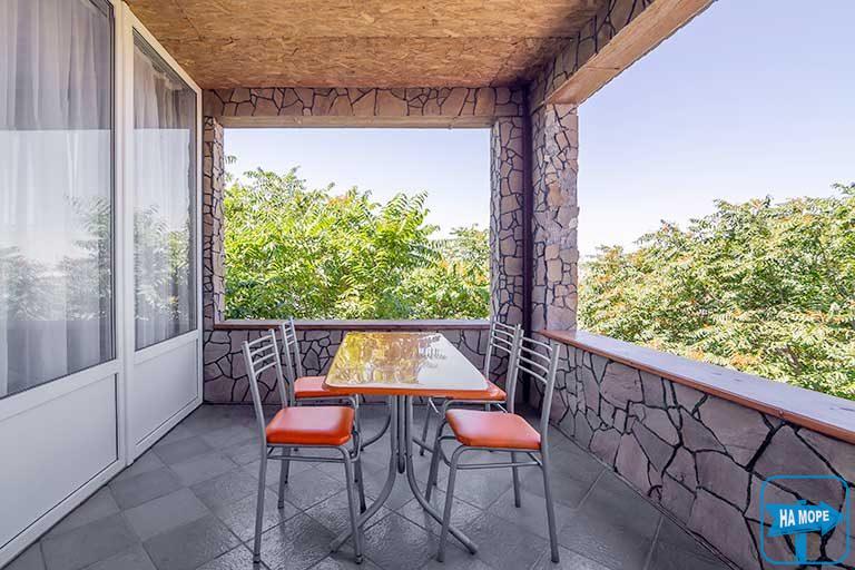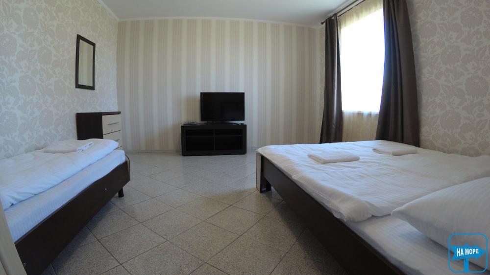 Номер з балконом, з якого відкривається краєвид на море, знаходиться на третьому поверсі головного корпусу. У номері: комфортне двоспальне ліжко з ортопедичним матрацом, двоспальний диван, холодильник, телевізор, кондиціонер; окрема ванна кімната з туалетом та душовою кабінкою; безлімітний wi-fi. У низький сезон у вартість номера входить сніданок за системою шведський стіл на трьох.