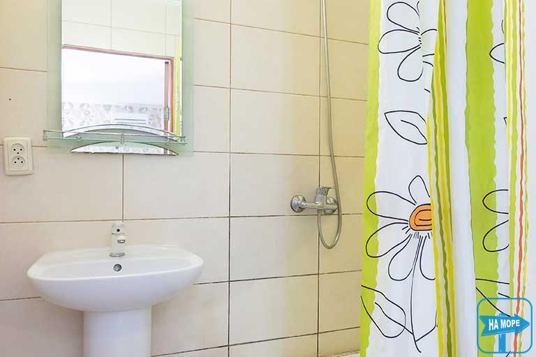 Окремий будиночок – чудова можливість відокремленого відпочинку із сім'єю чи друзями. У будиночку: • комфортне двоспальне ліжко зі зручним матрацом; • розкладний двоспальний диван; • тераса; • кухня-студія (холодильник, плита, мікрохвильова піч, посуд); • власна ванна кімната з туалетом та душем; • безлімітний WiFi та супутникове ТБ, кондиціонер. У низький сезон у вартість входить сніданок на три гості.