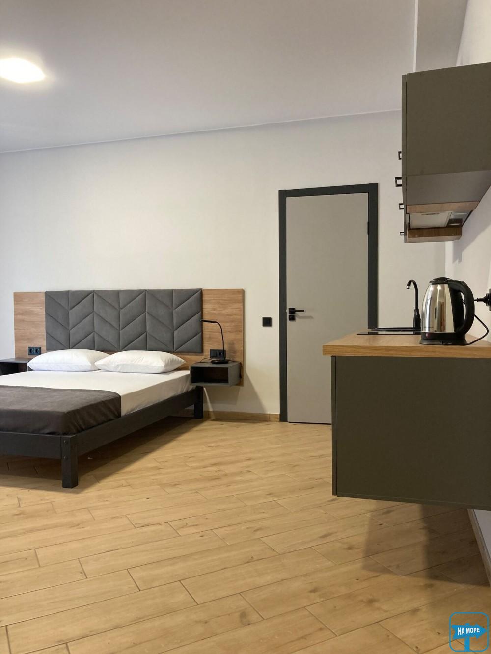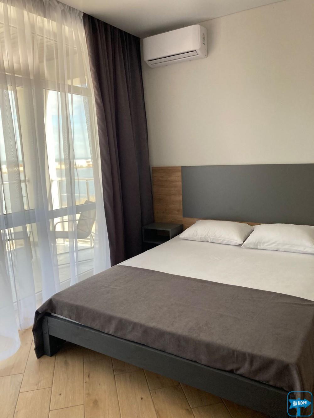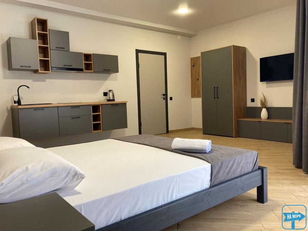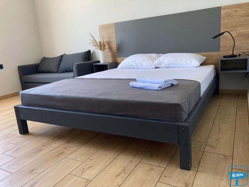 Однокімнатний номер з видом на море та просторою індивідуальною террасою буде радувати відпочиваючих своїм затишком та комфортом.