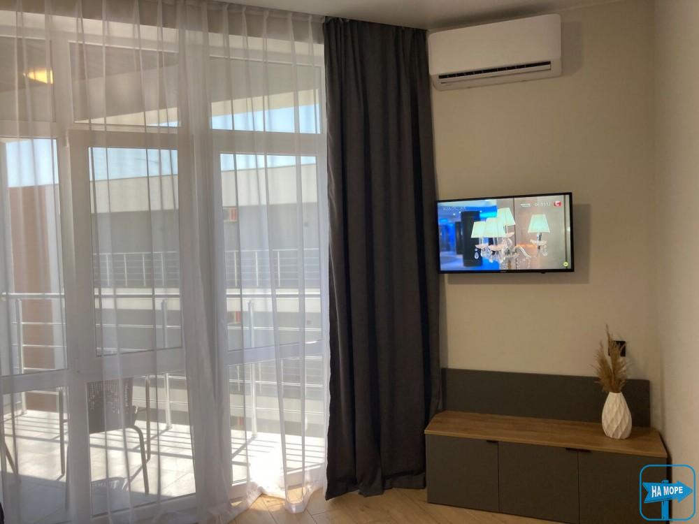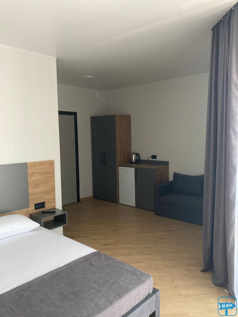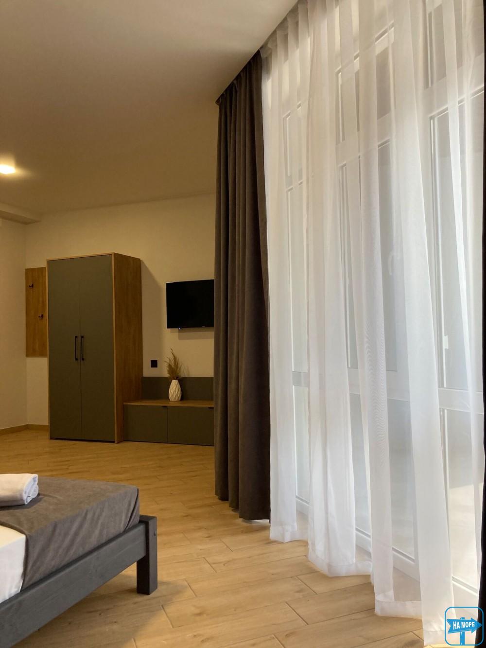 Однокімнатний номер з видом на море та просторою індивідуальною террасою буде радувати відпочиваючих своїм затишком та комфортом.