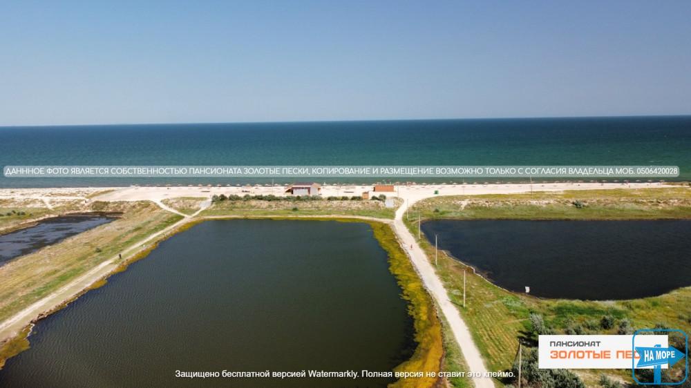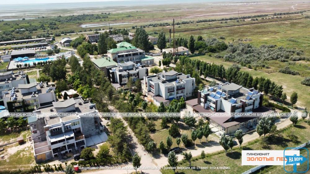 Пансіонат «ЗОЛОТІ ПІСКИ» - знаходиться за адресою: вул. Набережна 8, за 5 км від курортного селища Щасливцеве та 22 км від районного центру м.Геничеськ.