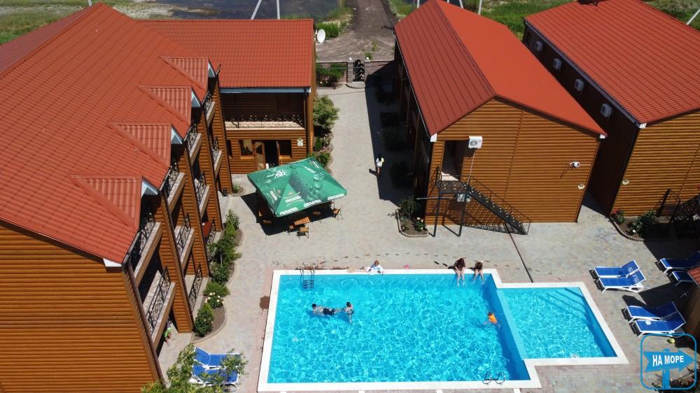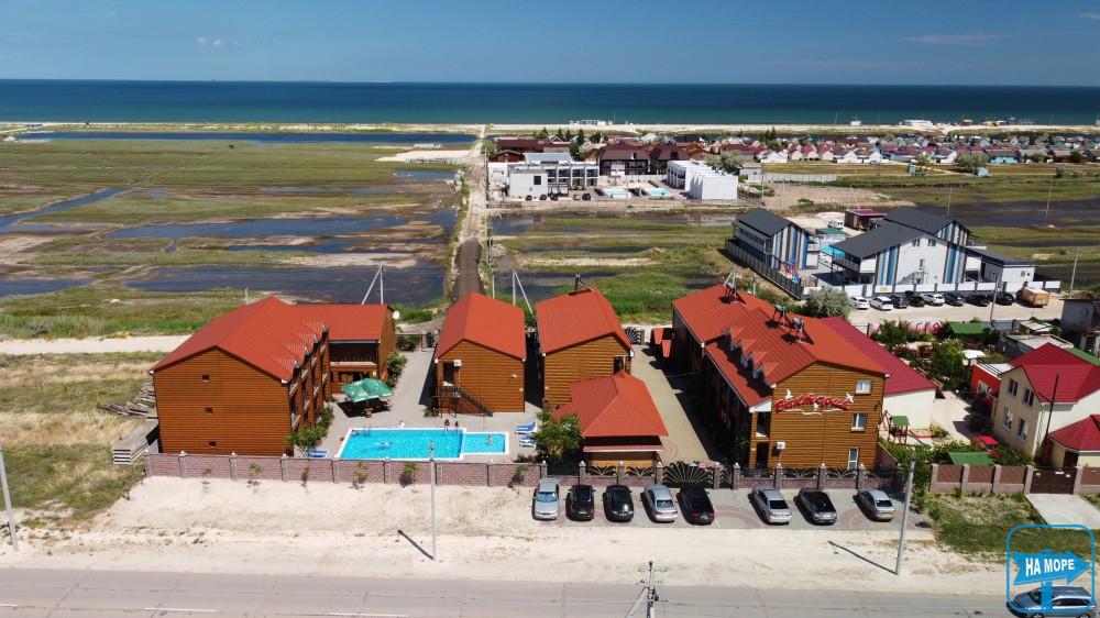 Готель "ВІКТОРІЯ" в Щасливцевому. Розташований готель на Азовському морі на самому початку курортного селища Щасливцеве на Арабатській Стрілці, друга лінія моря. Азовське море від бази відпочинку на відстані 300 метрів. До моря 5 хвилин неспішним кроком.