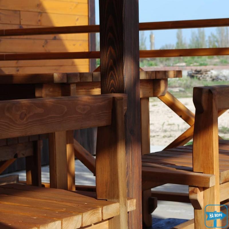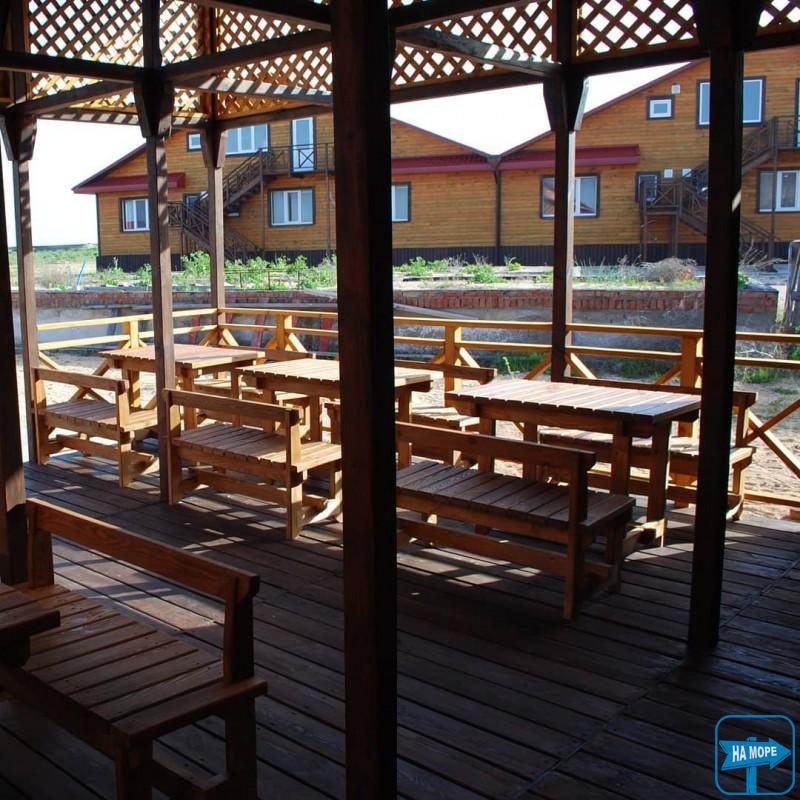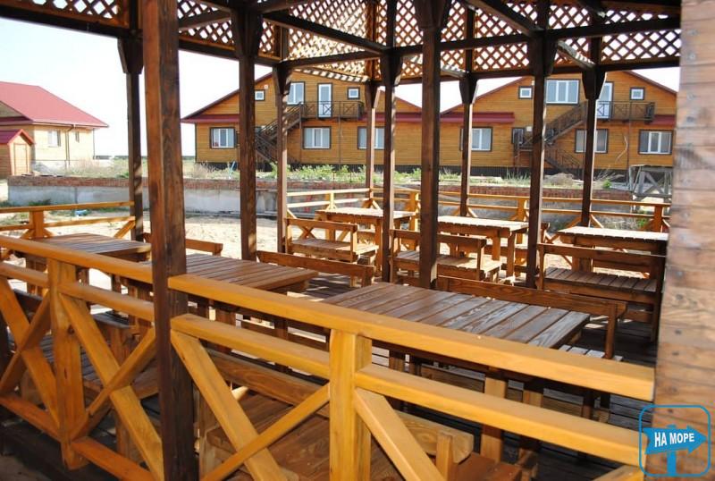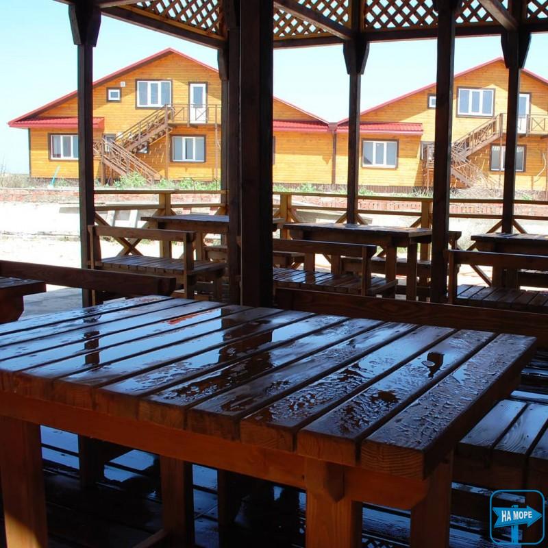• усі страви готуються лише на морській солі. Їда в хорошу погоду в літній дерев'яній альтанці, у разі негоди в їдальні. Всі меблі з масиву дерева.