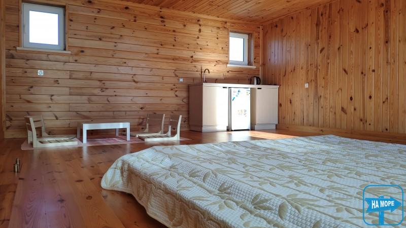 Затишок дерев'яного природного матеріалу обробки в навколишньому просторі поверне забуті відчуття живого торкання ступні та дерев'яної підлоги, натуральний запах деревини та запах моря з відкритого вікна. Що може бути краще для дитини будь-якого віку та дорослого? Прибирання у котеджах виконується щодня.