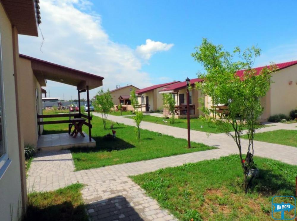 На території розташовані одноповерхові котеджі. Кожен номер має індивідуальний балкон та вхід.