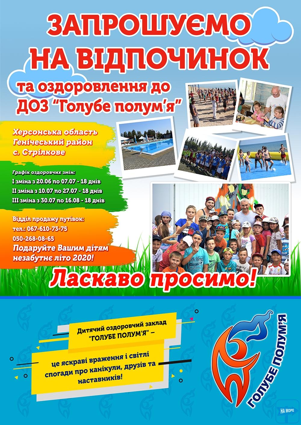 Перевезення дітей здійснюється централізовано з м.Дніпро до ст. Генічеськ залізничним транспортом, далі з м. Генічеськ автобусами до дитячого оздоровчого табору "Блакитне полум'я".