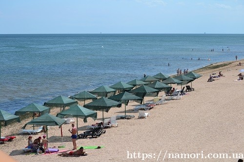 Від краю пляжу вода на відстані 10 м, глибина моря від 1,0 до 1,5 м. Від 10 м до 20 м піщана коса, глибина моря від 0,5 до 1 м. Від краю пляжу 30 метрів глибина моря 2 м більше.