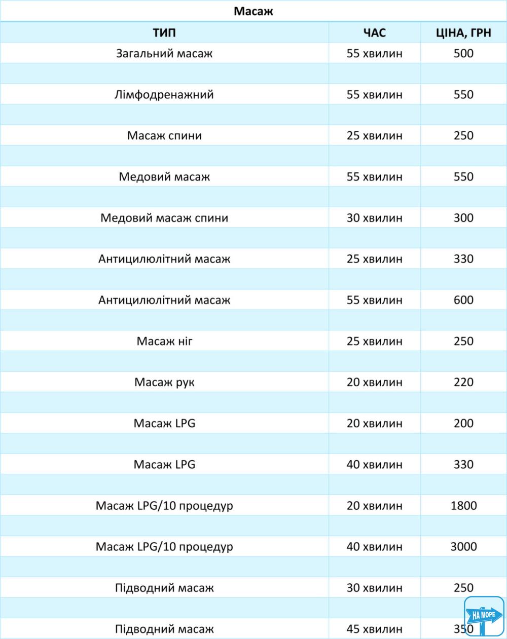Масажі - Більше пяти видів масажів, включаючи стоун-масаж