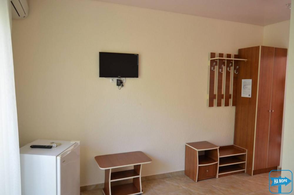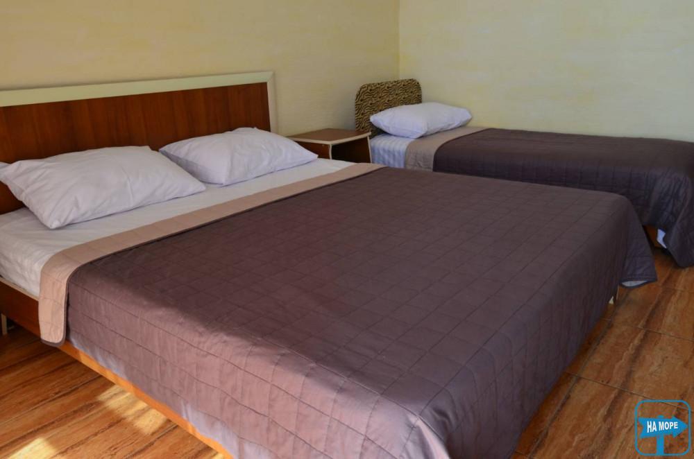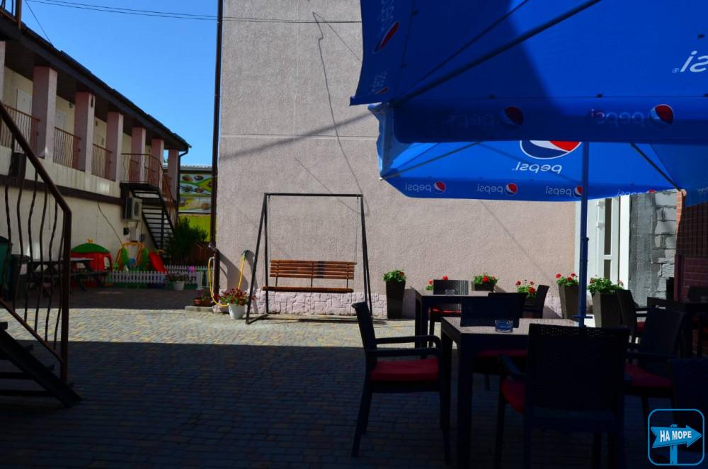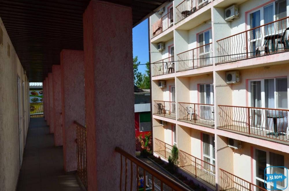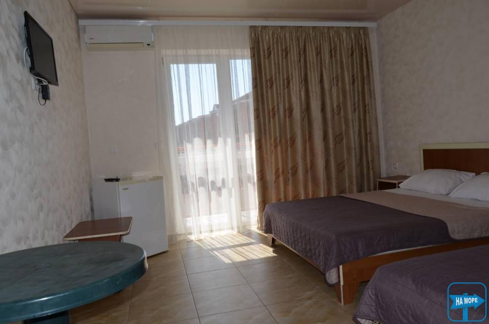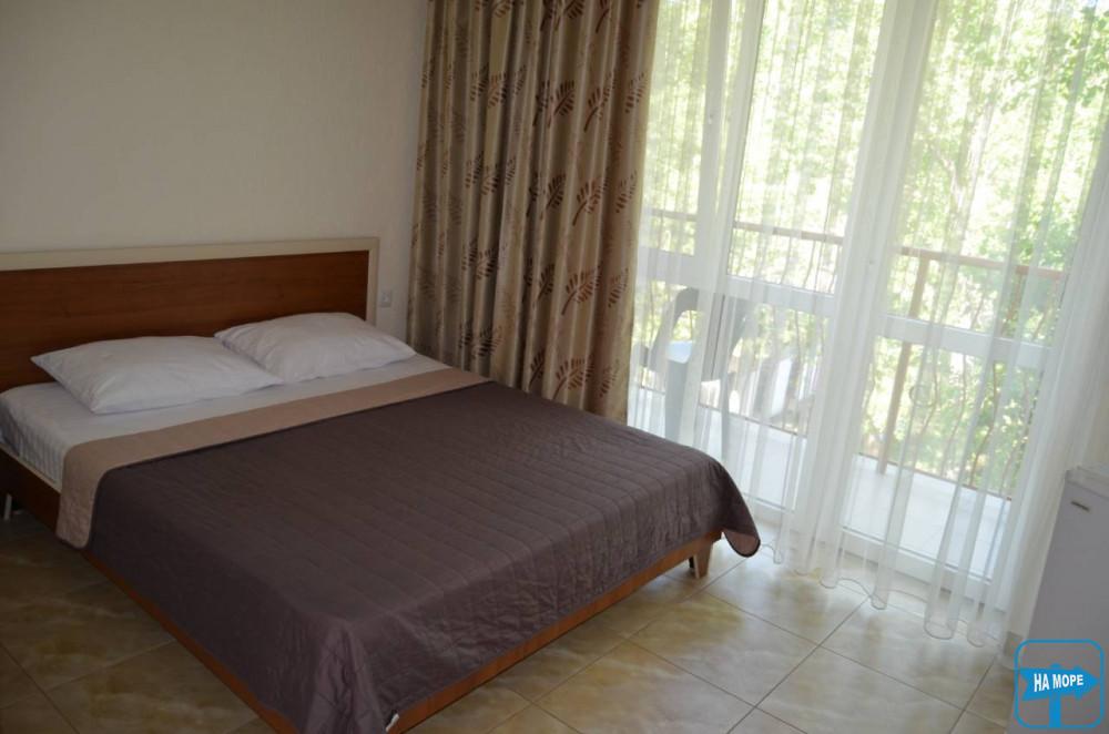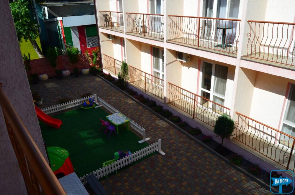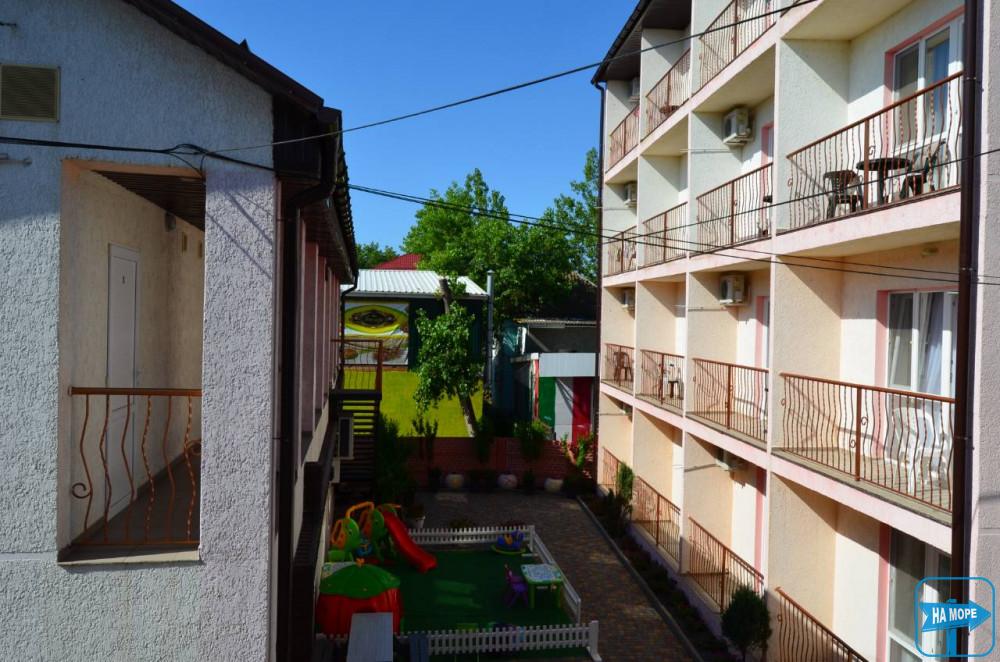На території готелю знаходиться сучасний 4-поверховий корпус, в якому розміщені комфортабельні номери, здатні вмістити від 2 до 4 осіб. Всі номери готелю обладнані необхідною технікою (телевізор, холодильник, кондиціонер) зручними меблями та санвузлами з душовими кабінами, які цілодобово забезпечують подачу холодної та гарячої води. Кожен номер має власний просторий балкон. Для самостійного приготування їжі на території готелю знаходиться спільна кухня, яка обладнана всім необхідним, включаючи посуд та столові прилади. Є дитячий майданчик для різноманітності дозвілля дітлахів та відпочинку їхніх батьків. Окрема барбекю зона обладнана мангалом та всім необхідним для приготування їжі на вогні. Для власників авто є місця на території або парковці, що знаходиться поруч.