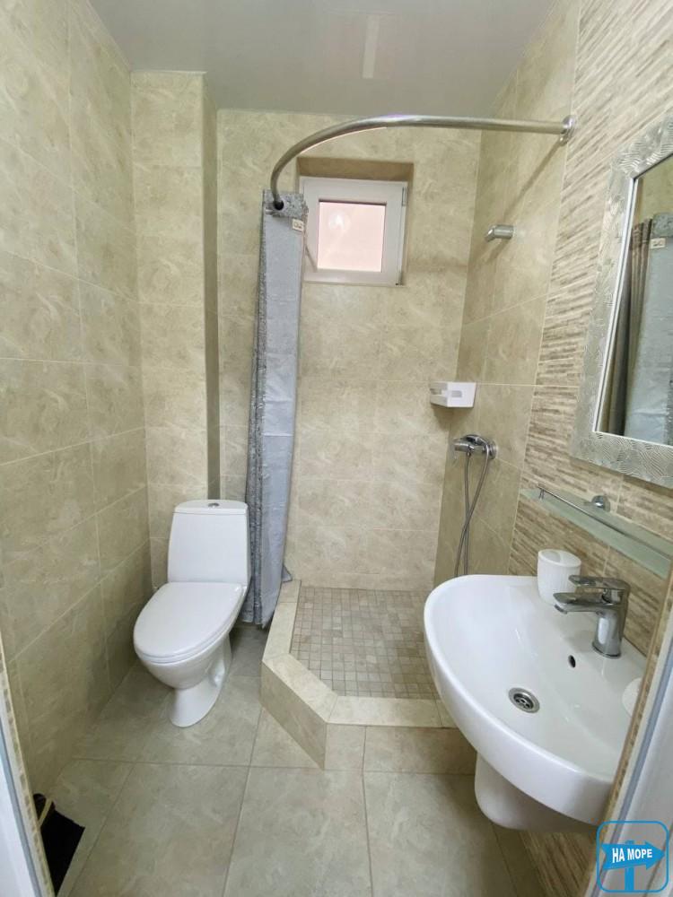 санвузол, з унітазом, раковиною та душовою кабіною;